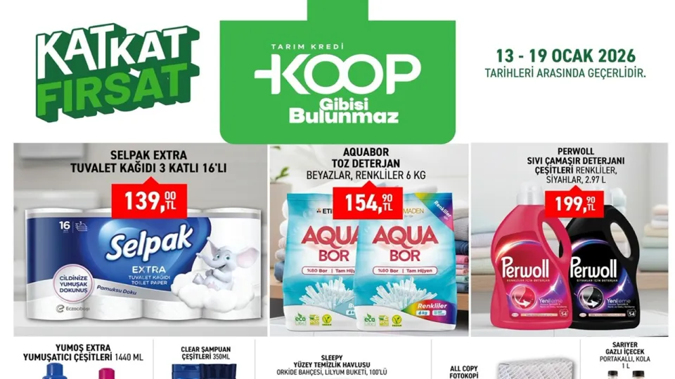 Tarım Kredi Kooperatif Marketleri, 13–19 Ocak 2026 tarihleri arasında geçerli olacak 'Katkat Fırsat' kampanyasıyla temizlik ve gıda ürünlerinde önemli indirimler sunuyor.
